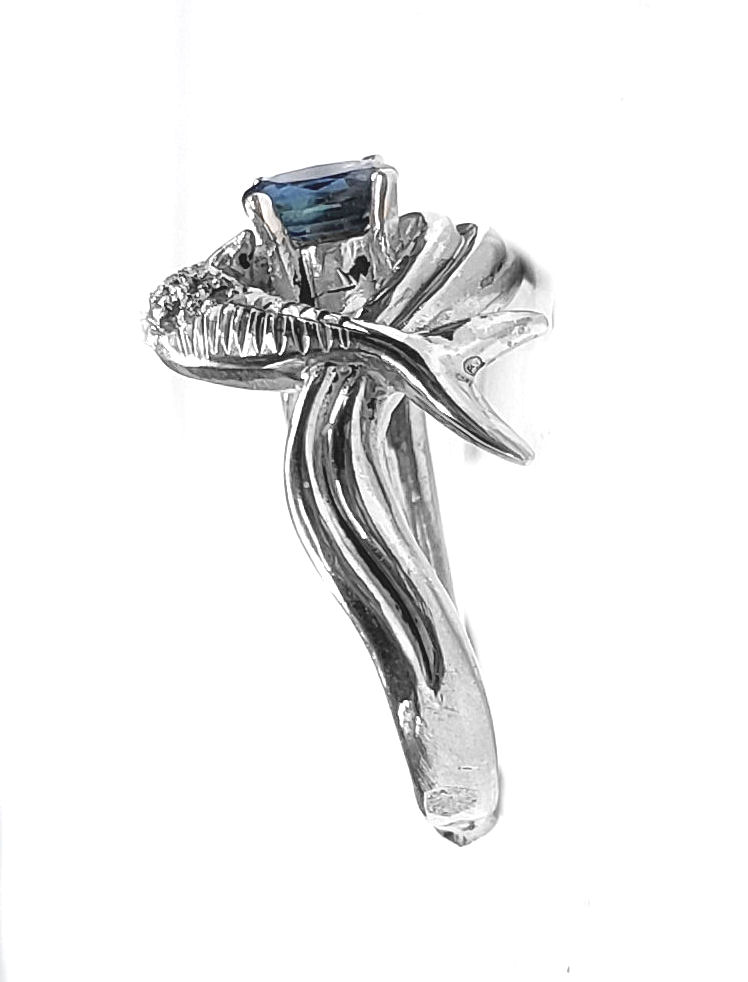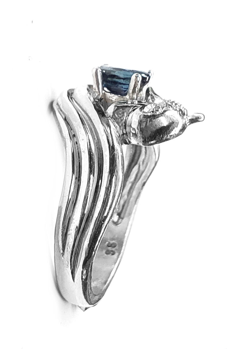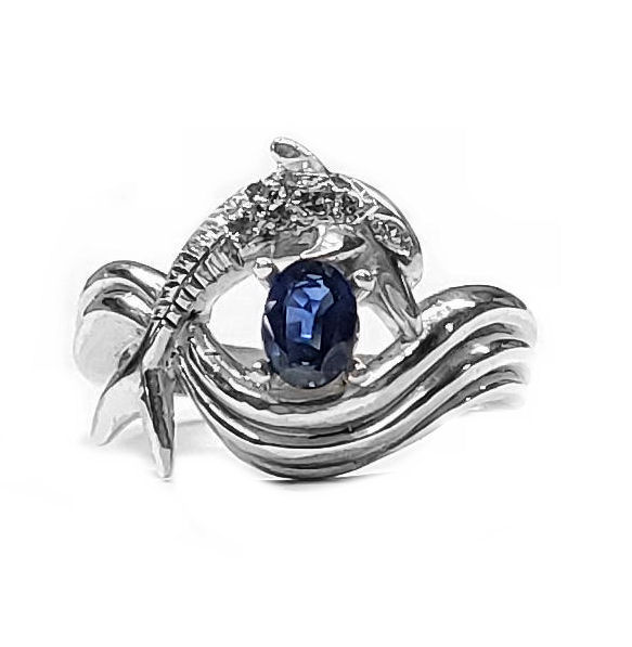 Dolphin Engagement Ring, "Independence Day" style with Diamonds,Sapphire Center